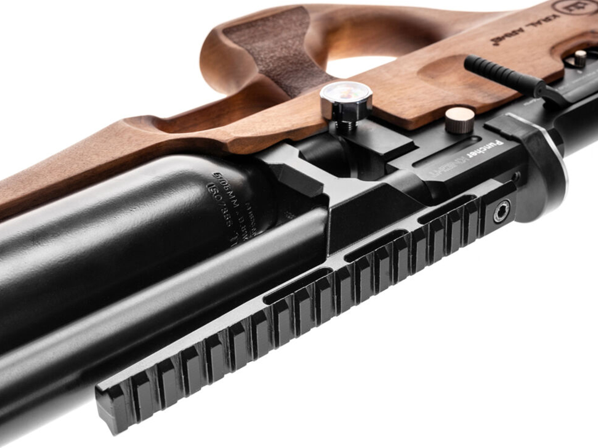 این تفنگ دارای مخزن فولادی 500 سی سی است . مخزن از 250 بار فشار عملیاتی برخوردار است . طول سیلندر بلند است و زیر لوله و در داخل قنداق قرار می گیرد . در قسمت زیر سیلندر ( زیر قنداق ) یک مانومتر با نمایشگر سه رنگ با رنگ های سبز ، زرد و قرمز که با تماشای آن می توانید میزان حجم باقی مانده از مخزن را متوجه شوید . در قسمت جلویی مخزن یک حفره وجود دارد این حفره برای اتصال کوبلینگ و شارژ مخزن استفاده می شود .
